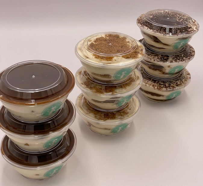 Chocolate Ganache Sweetcup, Lotus & Biscoff sweetcup, Chocolate Chip Tiramisu